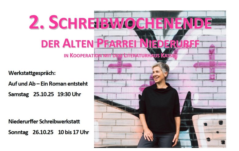 Die Teilnehmenden können bereits geschriebene Texte mitbringen und daran arbeiten oder vor Ort einen Text verfassen. Die Dozentin Maria Knissel ist Schriftstellerin und Vorstandsmitglied des Literaturhaus Kassel. Sie hat vier Romane veröffentlicht, zuletzt „Letzte Meile“ (Societäts-Verlag 2021). Für ihre literarische Arbeit erhielt sie mehrfach Stipendien vom Hessischen Ministerium für Wissenschaft und Kunst sowie das Initial-Stipendium der Akademie der Künste, Berlin. Zehn Jahre lang war sie Teil der der renommierten Darmstädter Textwerkstatt unter der Leitung von Kurt Drawert und Martina Weber. Seit 2015 lebt sie in Kassel, wo sie die „Textwerkstatt im Literaturhaus Kassel“ gründete. Seit 2024 leitet sie zudem die „Romanwerkstatt im Literaturhaus Kassel“ zusammen mit der Dramaturgin Lisa-Marie Dickreiter, seit 2025 ist sie Gastdozentin an der Uni Kassel.