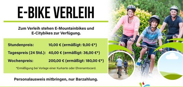 Die Radfahr-Saison startet wieder - ab, dem 16.03.2026 stehen in der Tourist-Information wieder 4 moderne E-Bikes zur Verfügung.