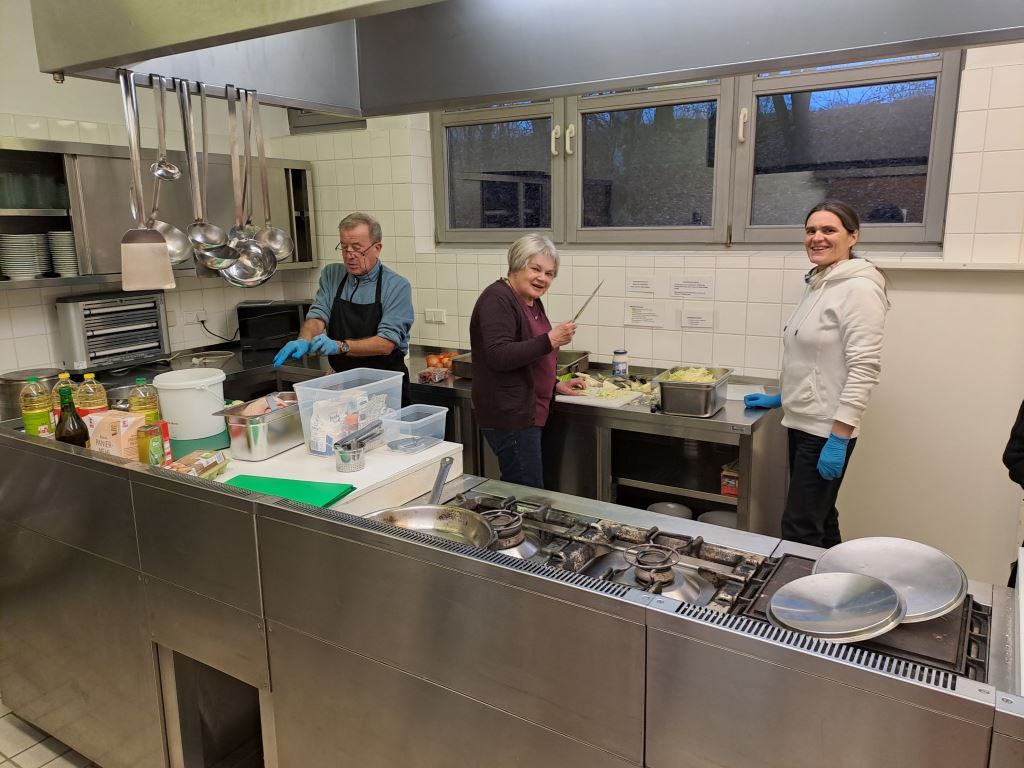Insgesamt fanden sich an diesem Abend wieder 40 Teilnehmende ein, kochten gemeinsam und bereiteten den Saal für das gemeinsames Essen vor. Unser Bürgermeister Achim Siebert kam ebenfalls auf einen kurzen Besuch vorbei und wurde natürlich nicht ohne einen Teller mit leckerem Essen entlassen- auch wenn er dieses aus terminlichen Gründen erst zuhause genießen konnte.