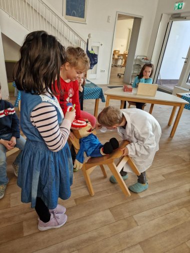 Die Patenzahnärztin der KiTa Welt-Entdecker, Frau Dr. Karen Krüger, besuchte die angehenden Schulkinder. Sie lernten wichtiges Wissen über die Zähne und den Kiefer kennen. Ein Röntgenbild weckte das besondere Interesse. Es war so interessant zu sehen, wie die Milchzähne aus dem Kiefer ragten und die bleibenden Zähne bereits im Kiefer auf ihren Durchbruch warten. Die Kinder genossen das Rollenspiel „Zahnarzt, Helferin und Patient“ zu spielen.